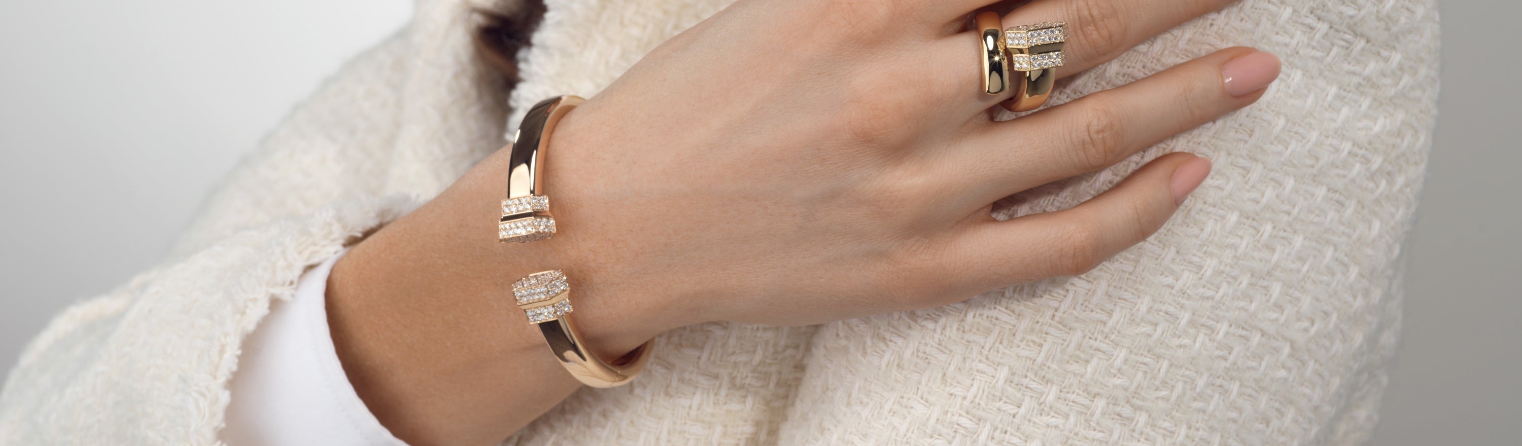 Browse our versatile collection featuring wide cuffs, delicate tennis bracelets, and stylish stackable bangles, expertly designed to meet your needs and to reflect your grace